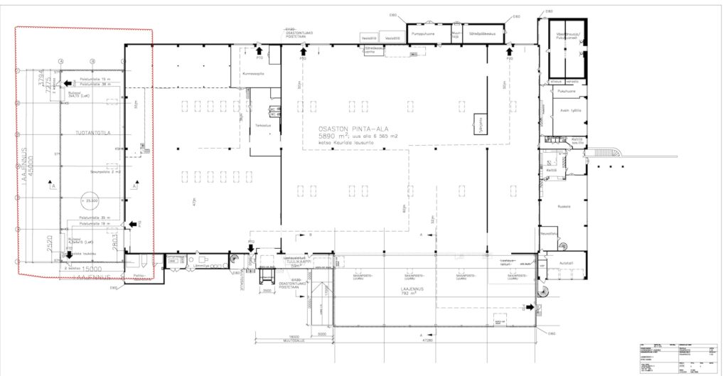 Toimimme projektinjohdossa laajennustyössä yrityksen nykyiselle myymälärakennukselle. Betonirunkoinen, paroc-seinällä ja paalutetulla betonilaatalla oleva myymälä (tuotantorakennus), jossa paljon ikkunapinta-alaa, epoksilattiat sekä nykyaikainen talotekniikka.